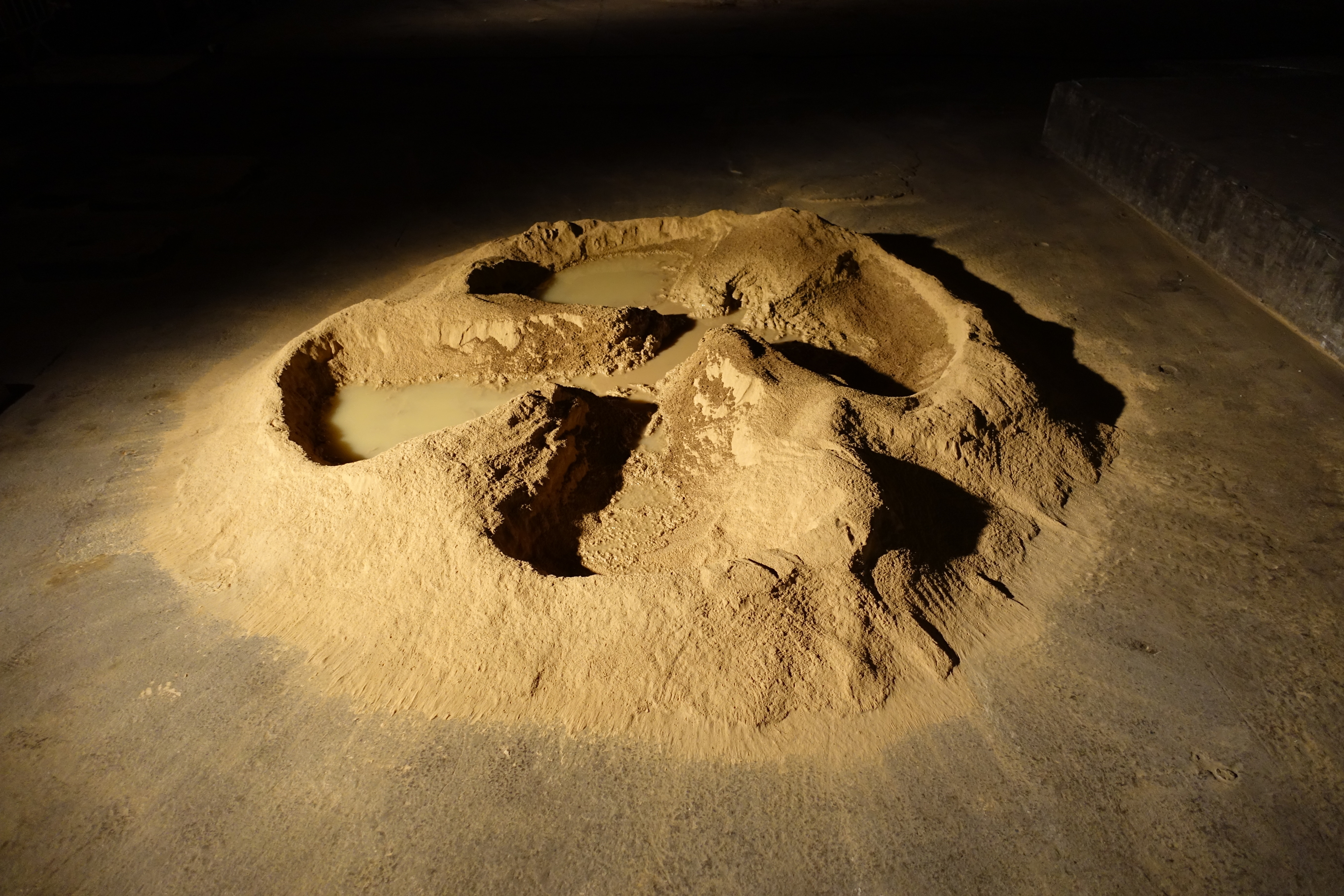Spirituel, ce saut de l’ange dans la terre d’argile qui prend forme au goute à goute et qui rappelle à l’artiste Fabien Léaustic l’enfant qui se jette dans la neige. Une idée du temps qui passe, de l’empreinte de notre passage sur terre ?